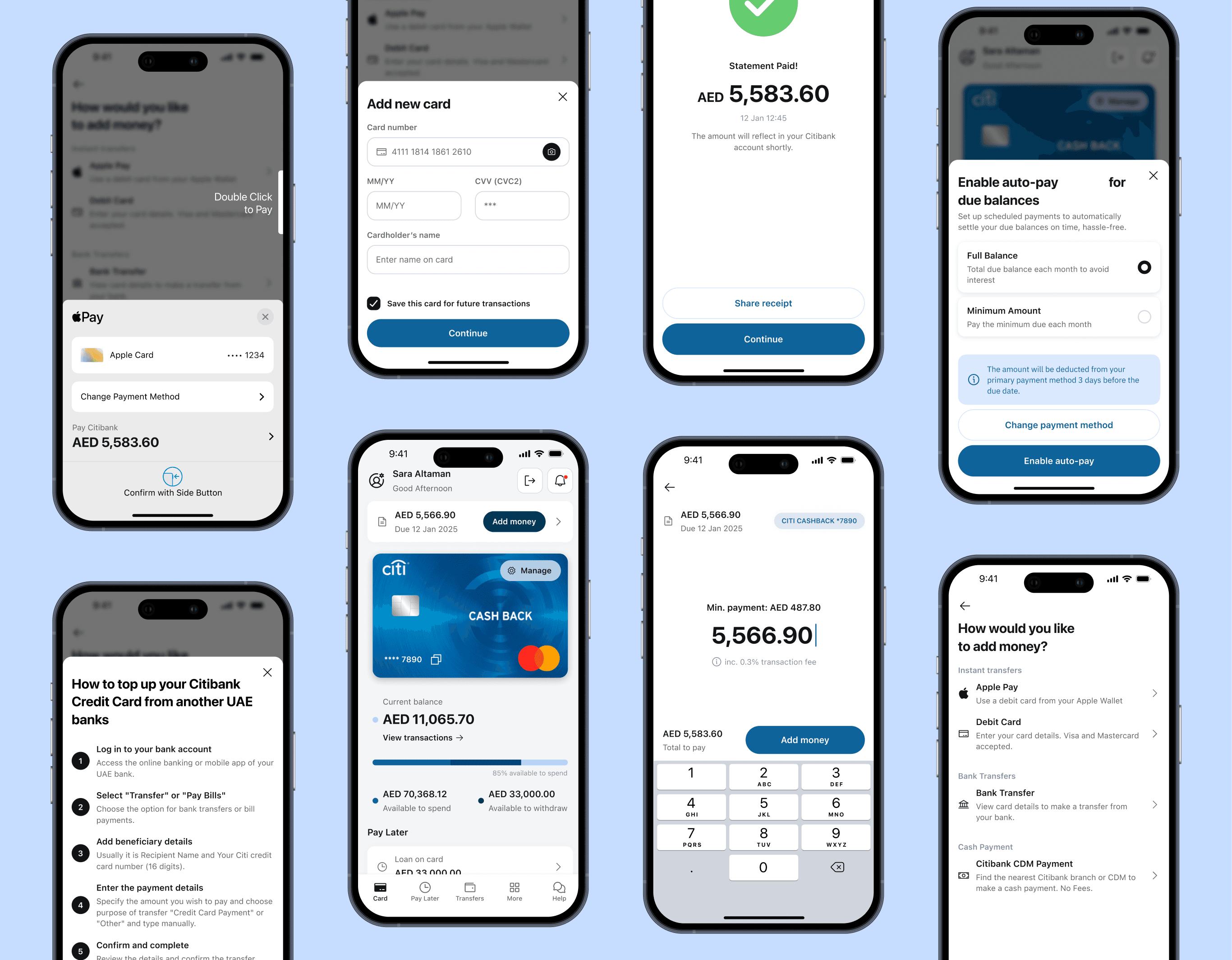 Through user research, competitive analysis, and iterative design, I identified and addressed key usability issues in the Citibank UAE app. By improving credit card top-ups, transaction clarity, money transfers, and customer support, the proposed redesign enhances the overall banking experience, reduces friction for users, and drives substantial revenue growth for the business.